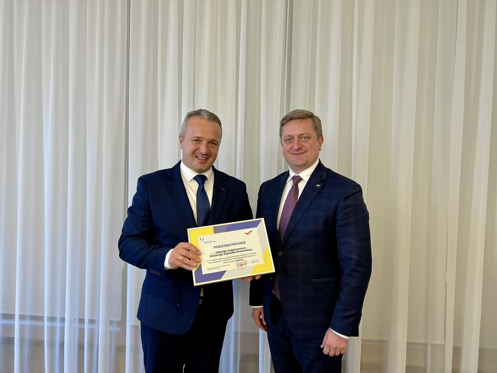 „Chciałbym serdecznie podziękować torunianom, bydgoszczanom i wszystkim mieszkańcom województwa kujawsko-pomorskiego za ogromne wsparcie, jakie czujemy od wszystkich w obliczu rosyjskiej agresji. Odwiedziłem wiele miejsc, spotkałem się z przedstawicielami organizacji pozarządowych, władz miasta i województwa i bardzo się cieszę, że nie męczy Was solidarność z nami i że pomoc Ukraińcom, zarówno tym mieszkającym w Toruniu, jak i tym walczącym z rosyjskim agresorem, jest kontynuowana. Walczymy przecież nie tylko o naszą suwerenność i europejskość, ale także o wartości, które są bliskie Polsce, Polakom i całemu wolnemu światu” - powiedział ambasador Ukrainy w Polsce Vasyl Zvarych.