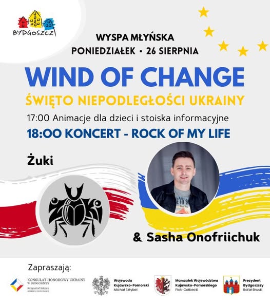 26 sierpnia 2024 roku na Wyspie Młyńskiej w Bydgoszczy odbyła się uroczystość pod nazwą Wind of Change z okazji Dnia Niepodległości Ukrainy.